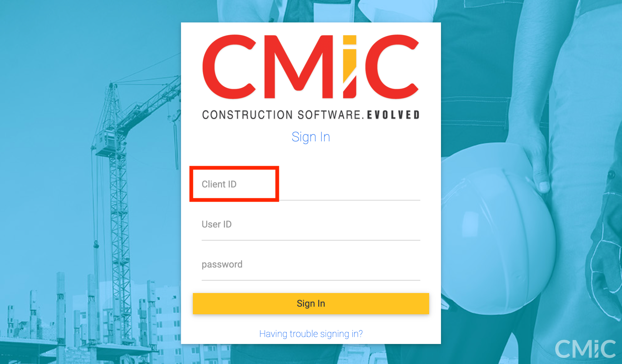 If you use SSO and/or skip the CMiC login screen, reach out to your CMiC consultant for the client ID info.
